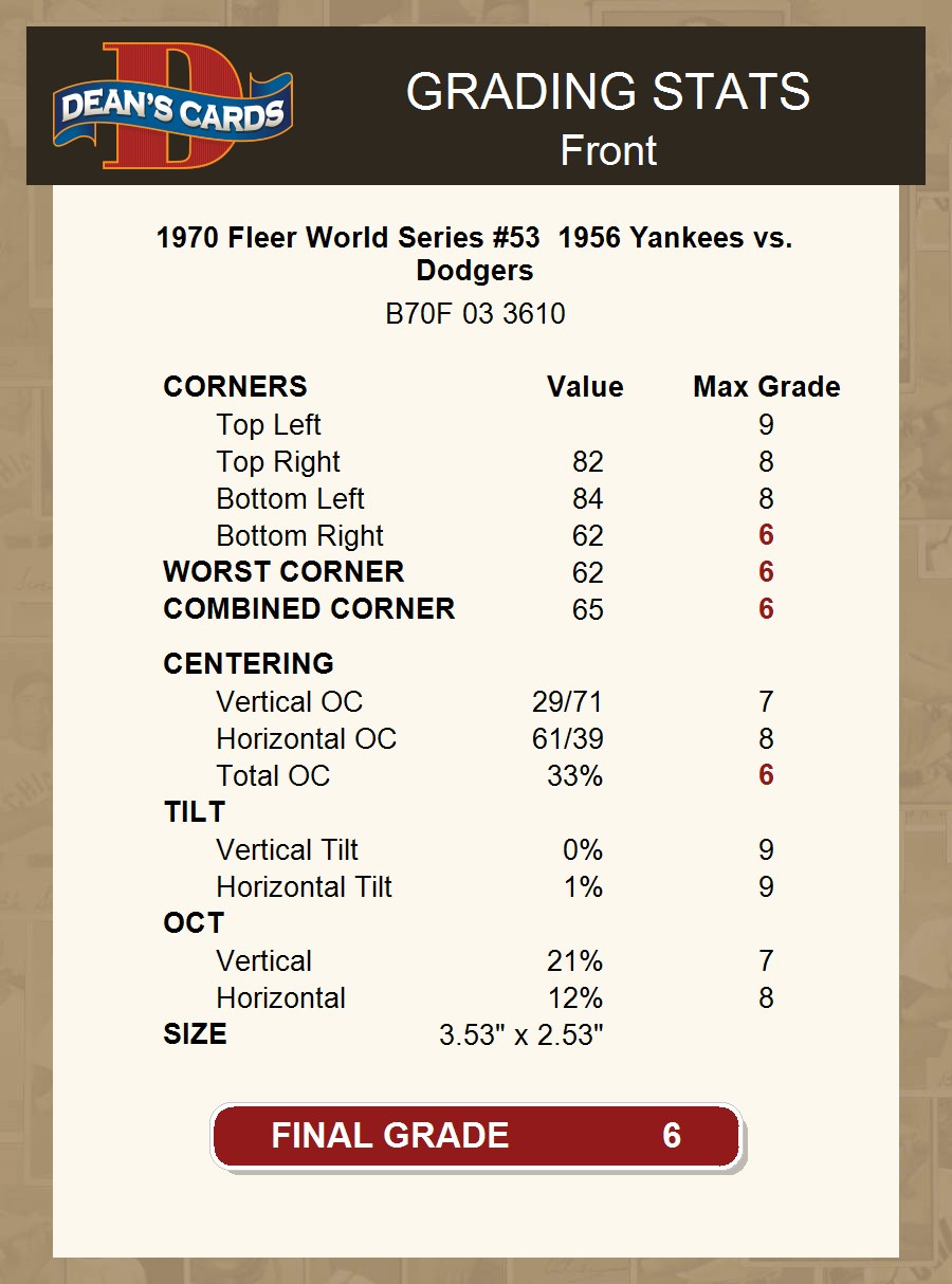 1970 Fleer World Series #53 1956 Yankees vs. Dodgers 6 - EX/MT