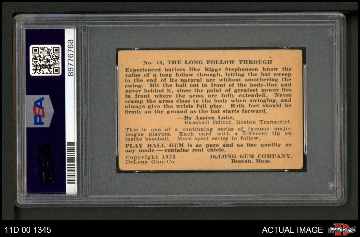 1933 DeLong Gum R333 #15 Riggs Stephenson PSA 2 - GOOD