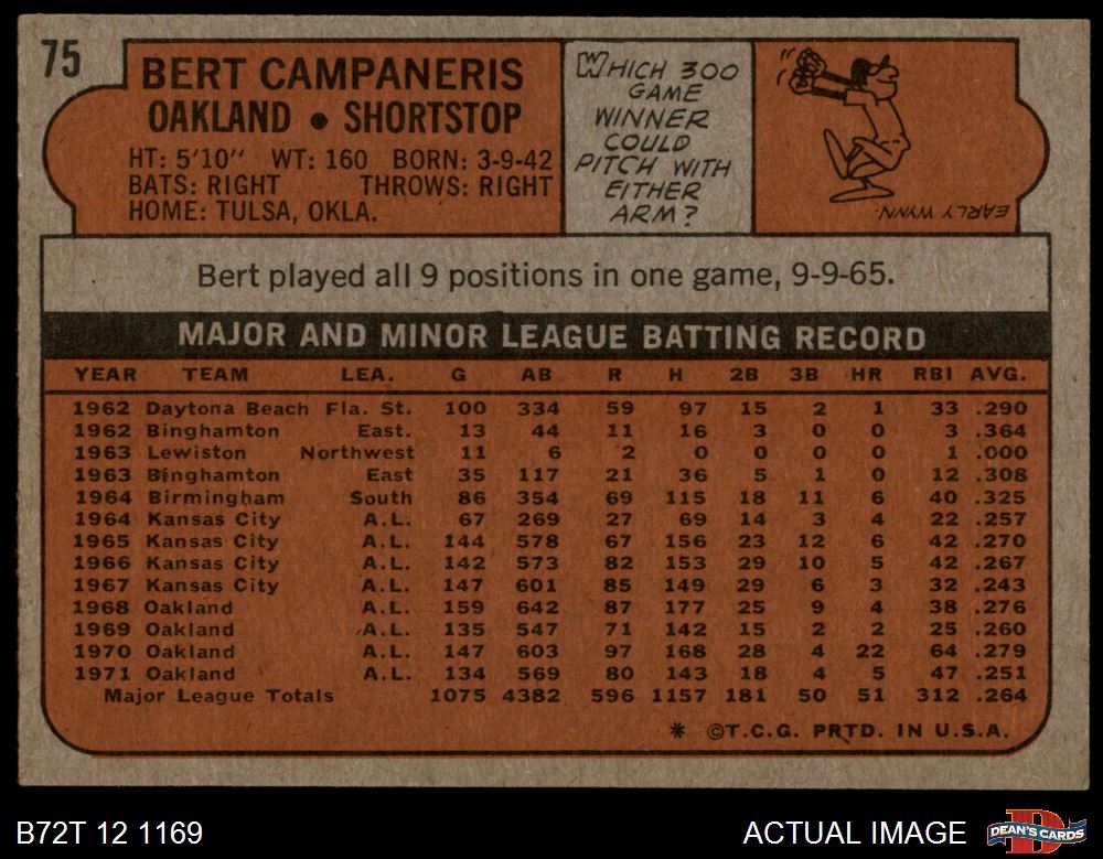 1972 Topps #75 Bert Campaneris