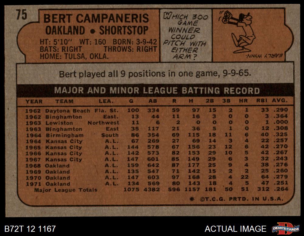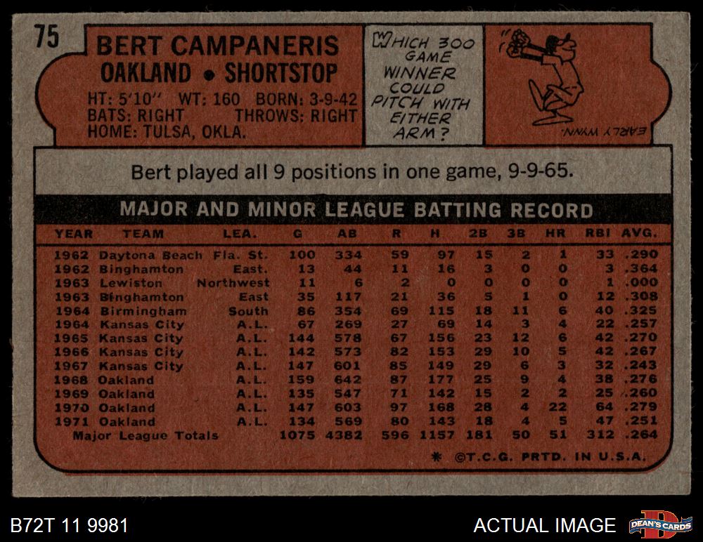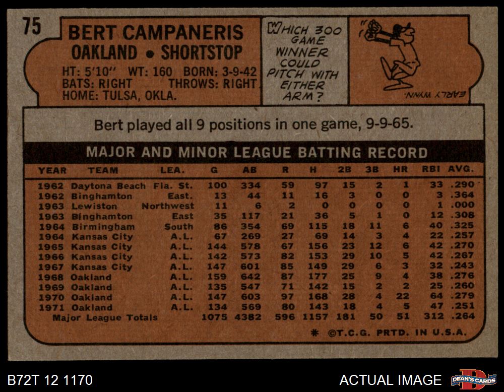 1972 Topps #75 Bert Campaneris 4 - VG/EX