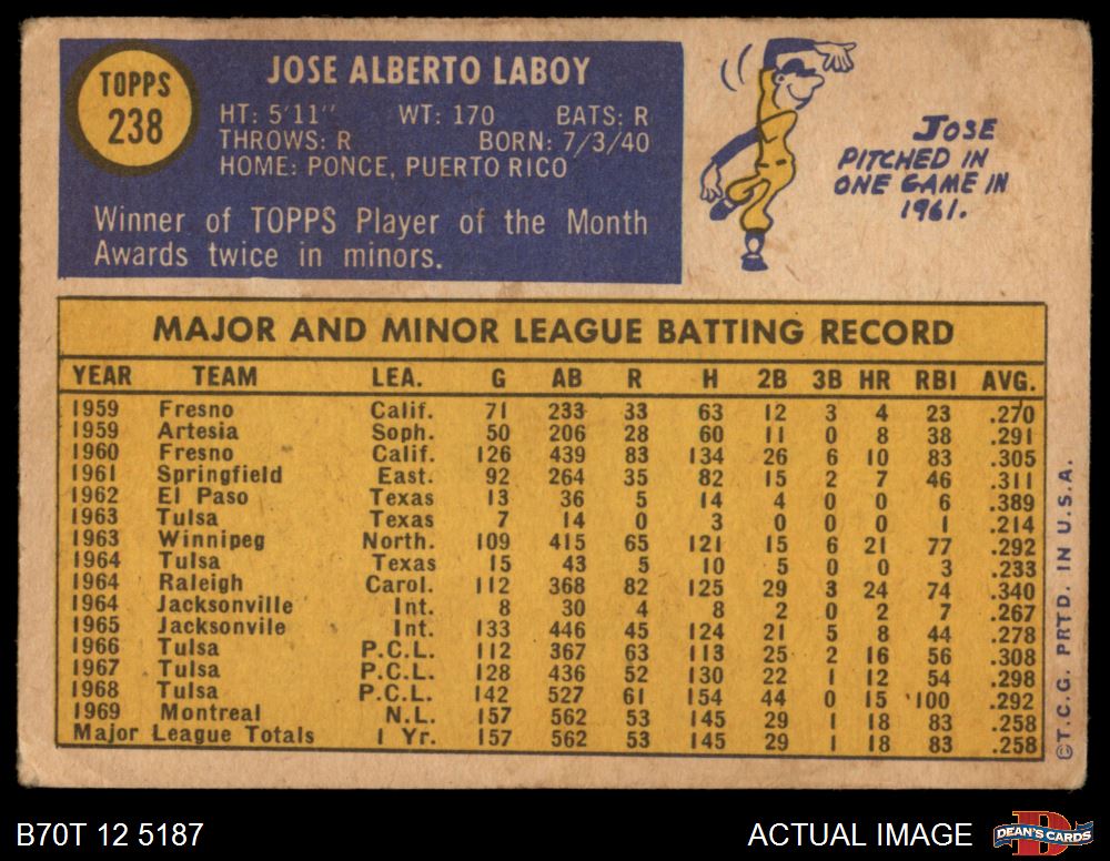 1970 Topps #238 Jose Laboy 2 - GOOD