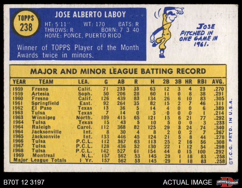 1970 Topps #238 Jose Laboy 4 - VG/EX