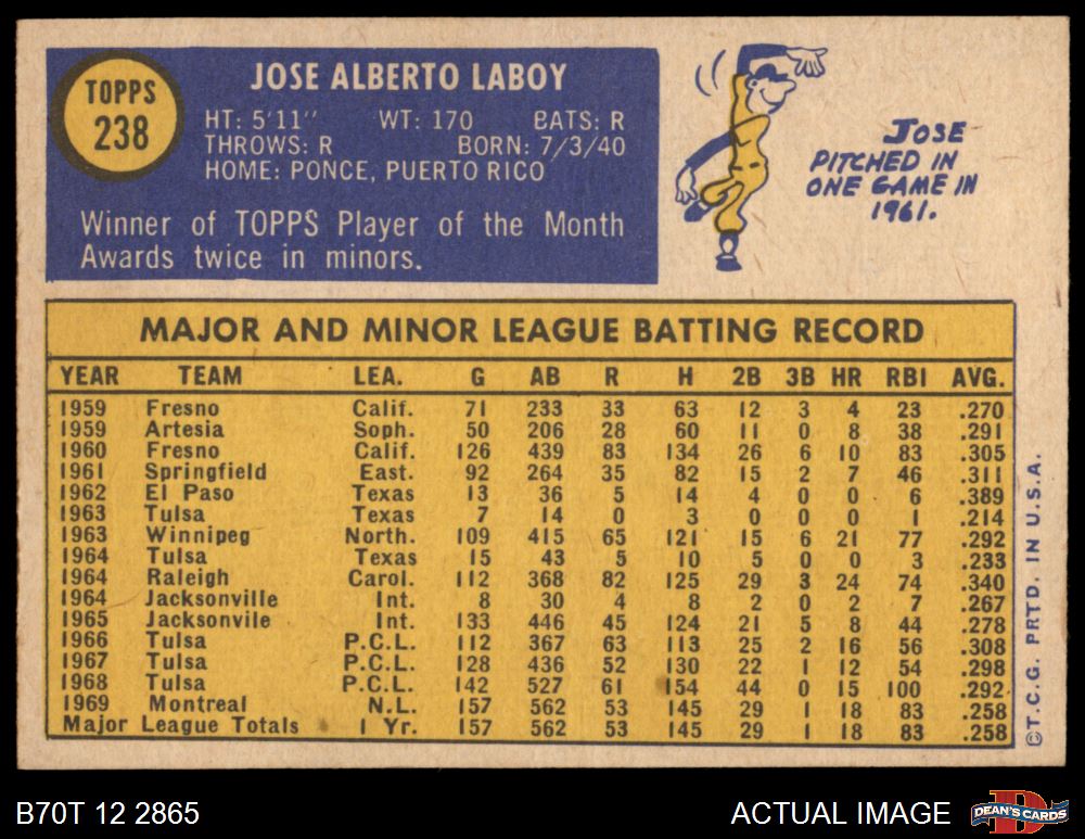 1970 Topps #238 Jose Laboy 6 - EX/MT