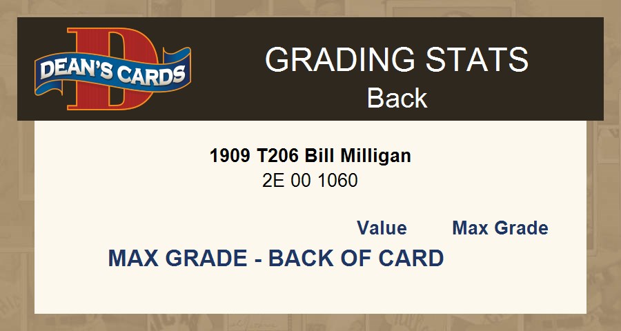 1909 T206 Bill Milligan PSA 5 - EX