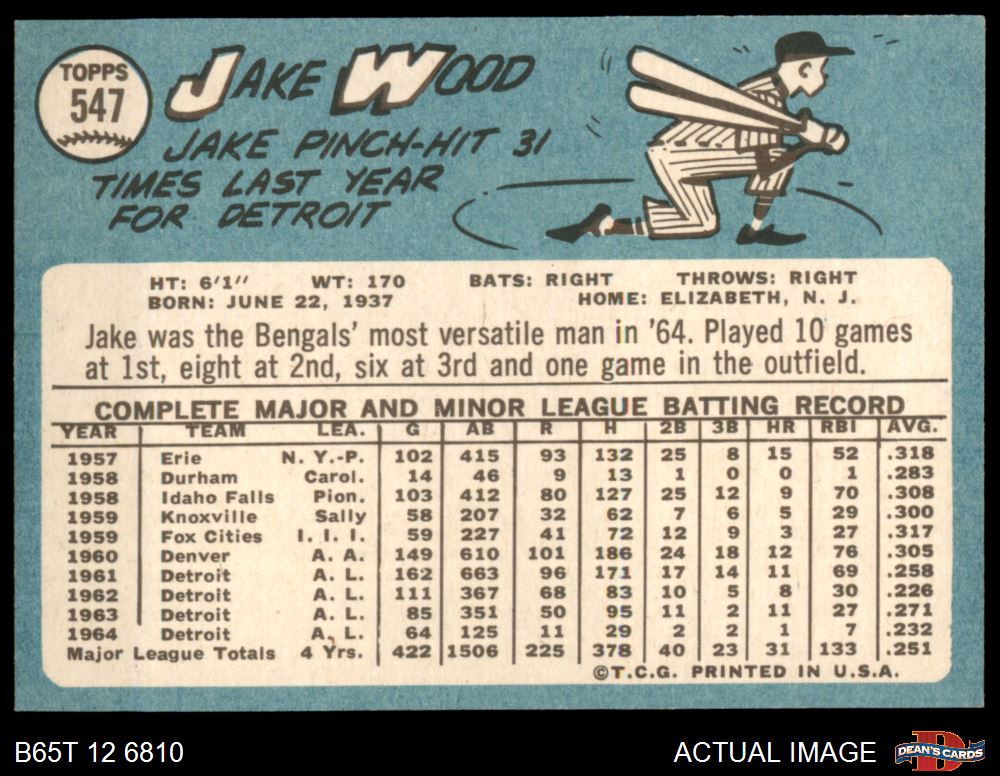 1965 Topps #547 Jake Wood 5 - EX