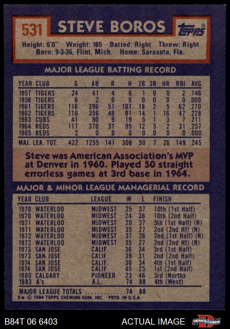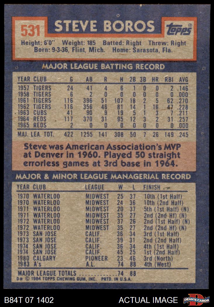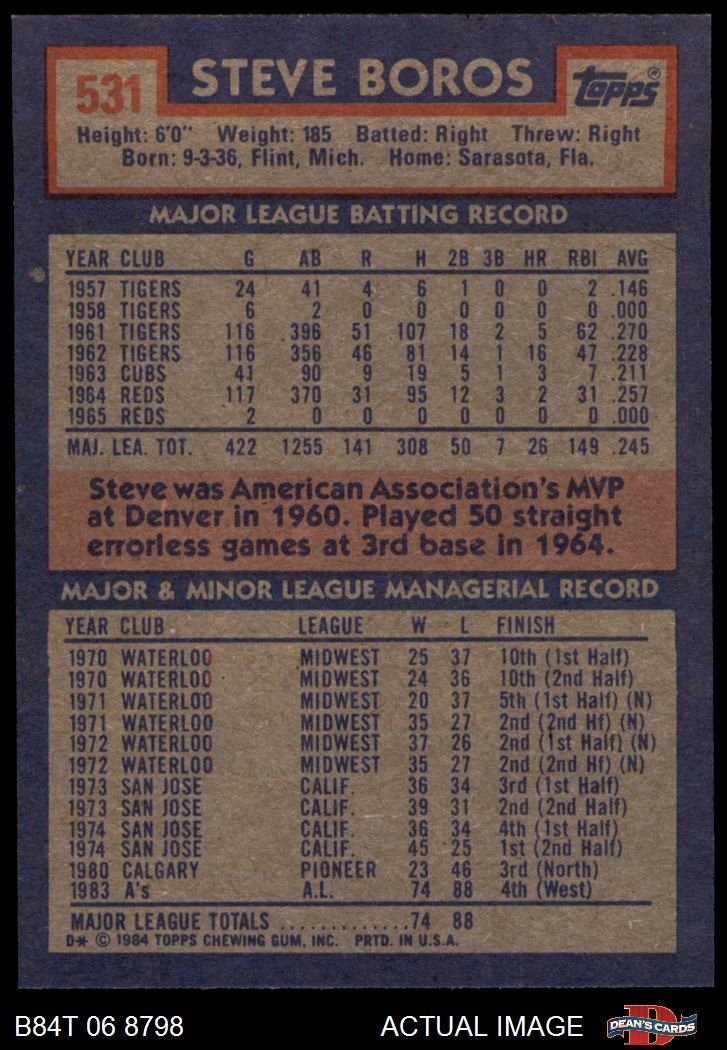 1984 Topps #531 Steve Boros 8 - NM/MT