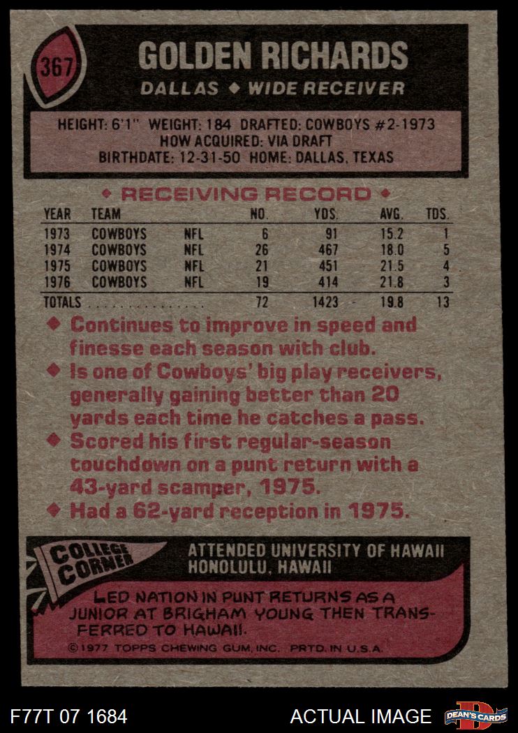 1977 Topps #367 Golden Richards 5 - EX