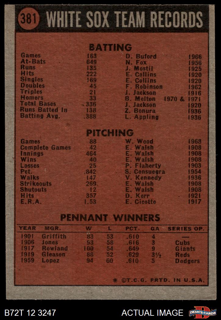 1972 Topps #381 White Sox Team 2 - GOOD
