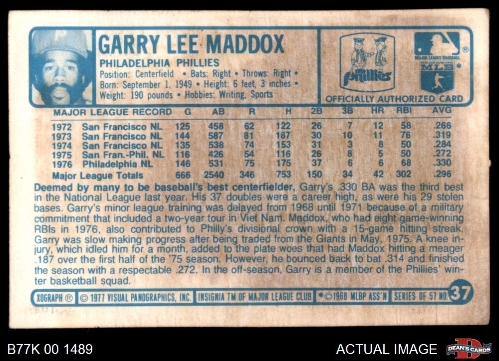 1977 Kellogg's #37 Garry Maddox