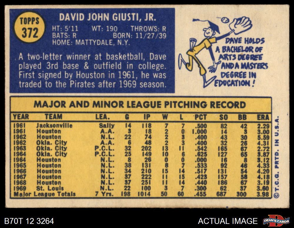 1970 Topps #372 Dave Giusti 4 - VG/EX