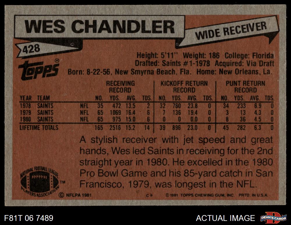1981 Topps #428 Wes Chandler 7.5 - NM+