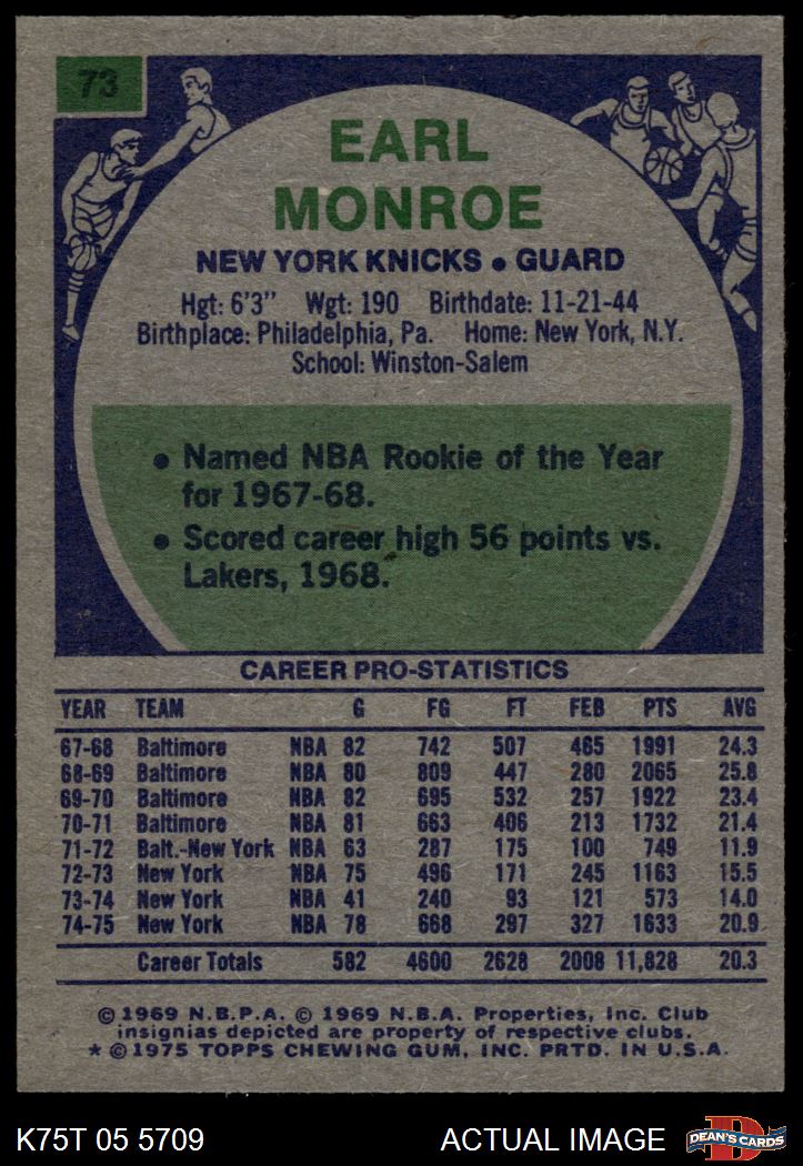 1975 Topps #73 Earl Monroe 6 - EX/MT