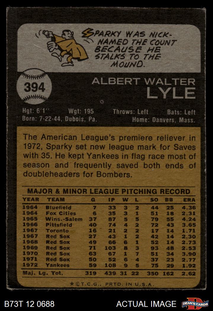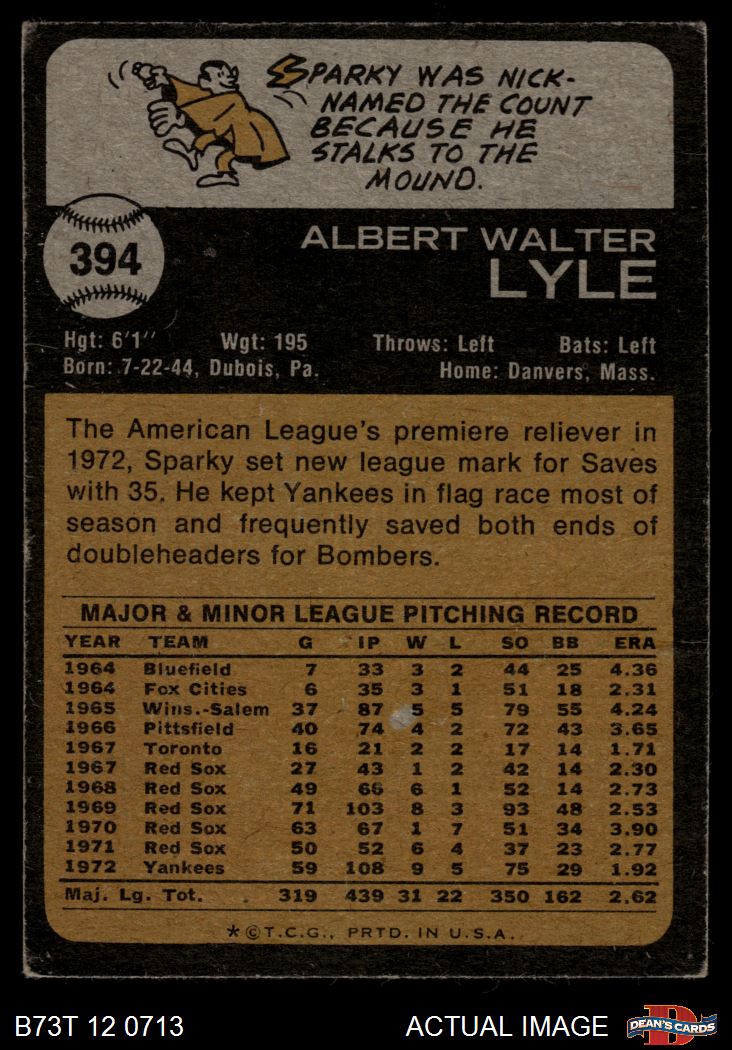 1973 Topps #394 Sparky Lyle 1.5 - FAIR