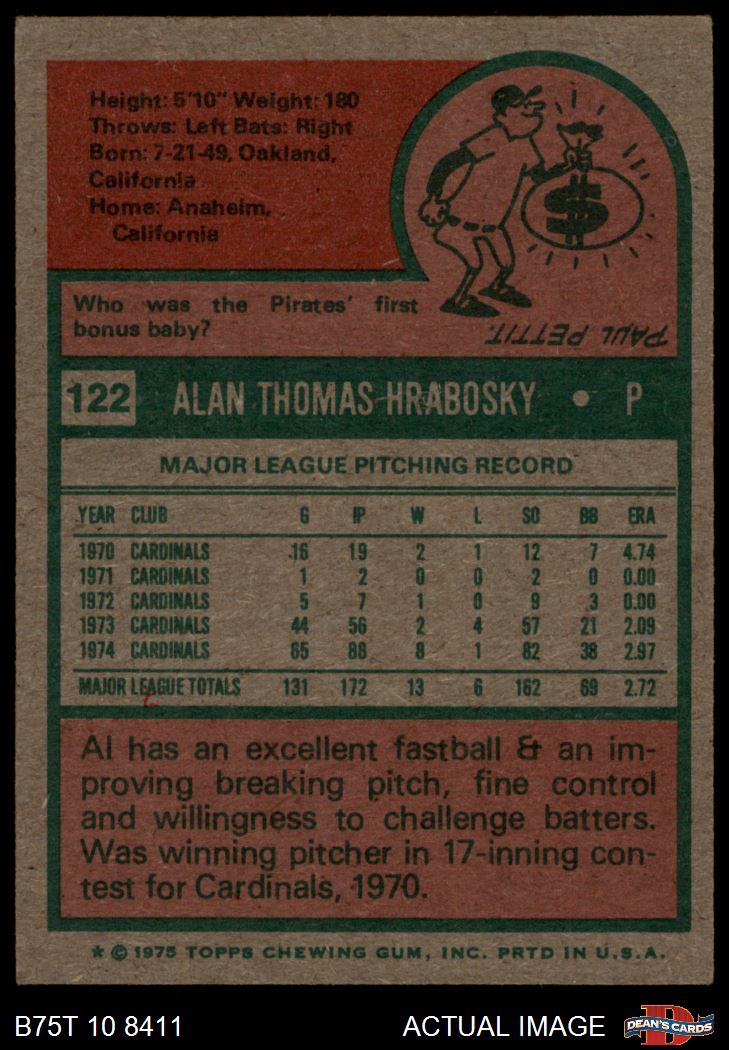 1975 Topps #122 Al Hrabosky 5 - EX