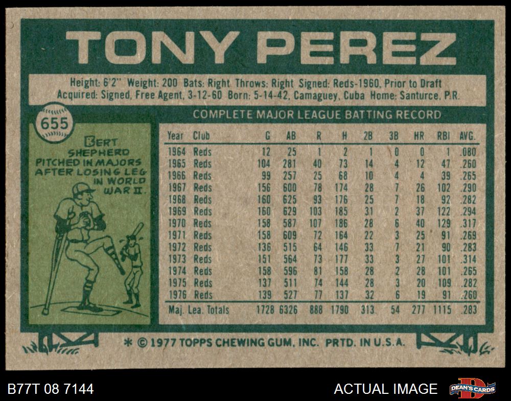 1977 Topps #655 Tony Perez 7.5 - NM+