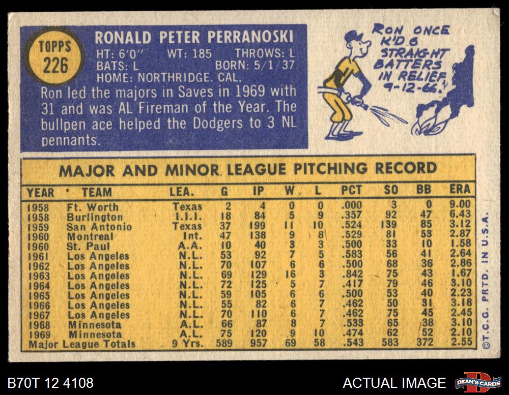 1970 Topps #226 Ron Perranoski