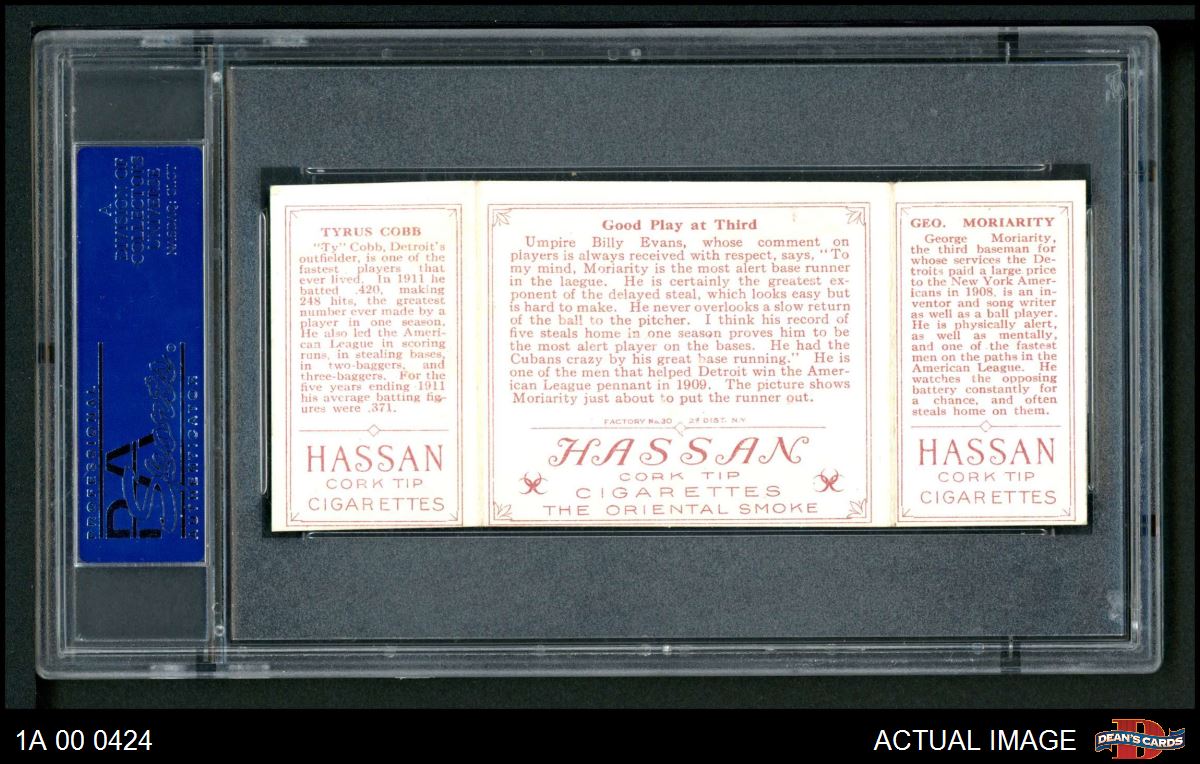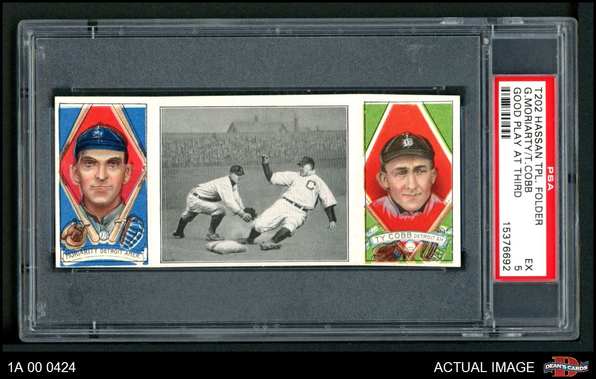 1912 T202 Hassan - Ty Cobb / George Moriarty Good Play At Third PSA 5 - EX