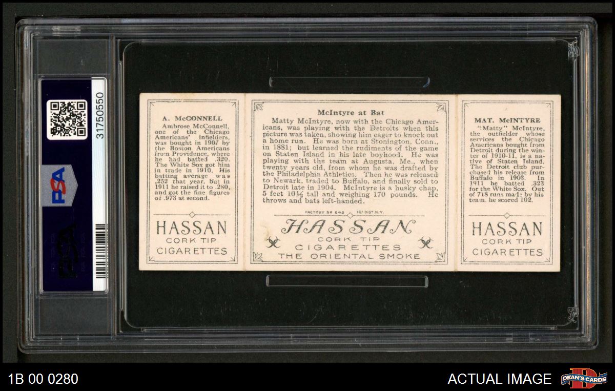 1912 T202 Hassan - Ambrose McConnell / Matty McIntyre McIntyre At Bat PSA 5 - EX