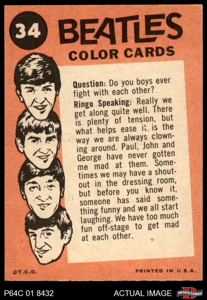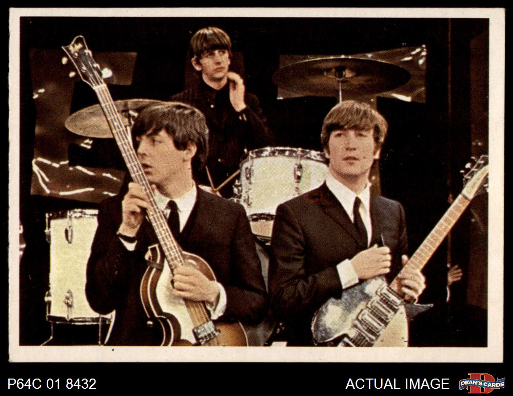 1964 Topps Beatles Color #34 Paul, John with Ringo performing 6 - EX/MT