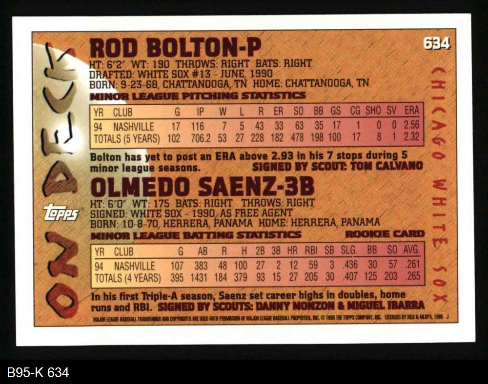 1995 Topps Baseball Cards (2,420 available)1995 Topps White Sox (133 available)