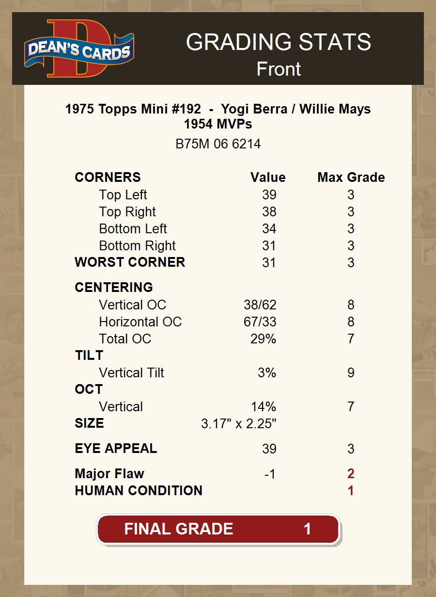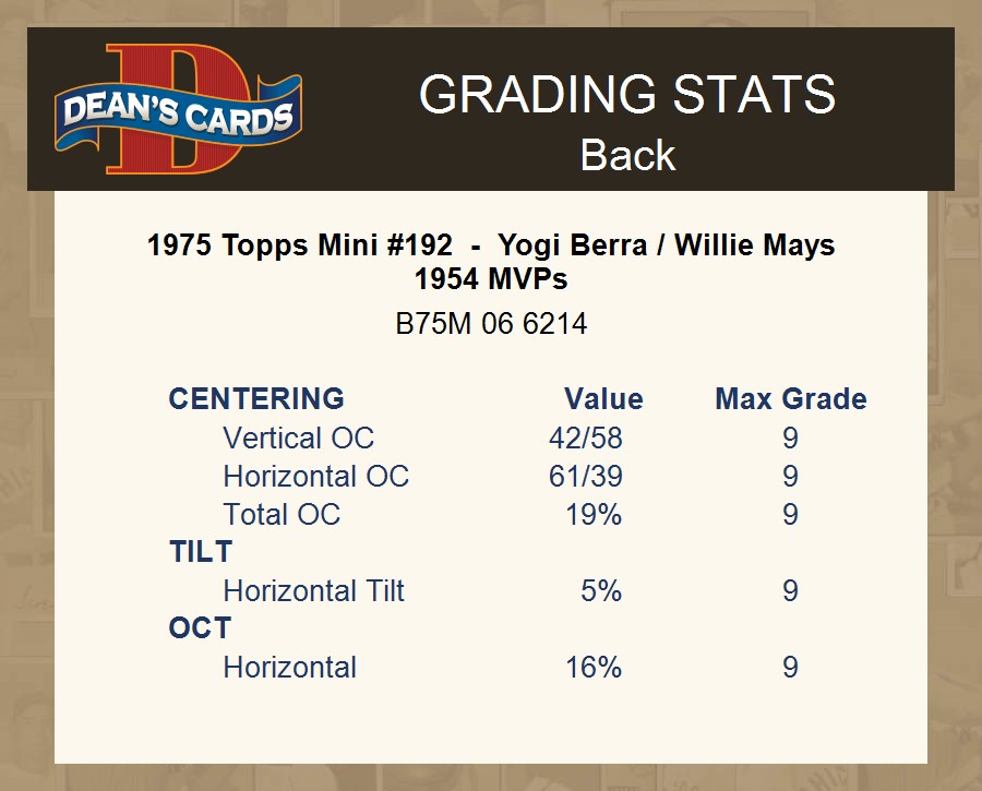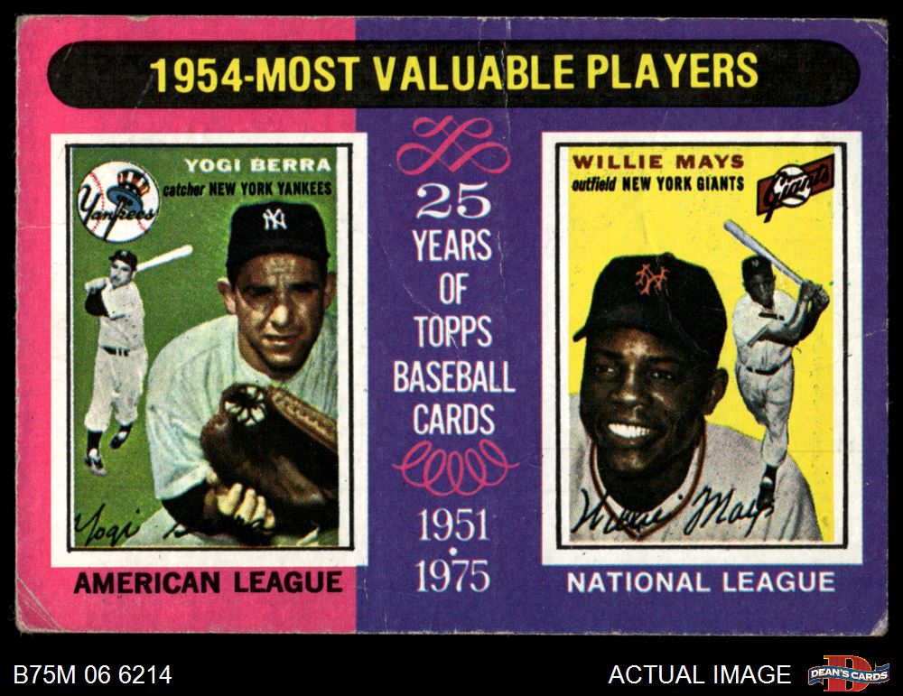 1975 Topps Mini #192 - Yogi Berra / Willie Mays 1954 MVPs 1 - POOR