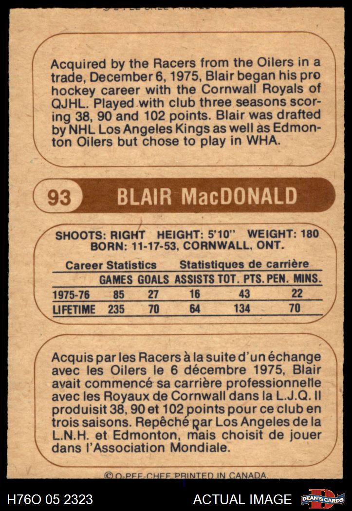 1976 O-Pee-Chee WHA #93 Blair MacDonald 4 - VG/EX