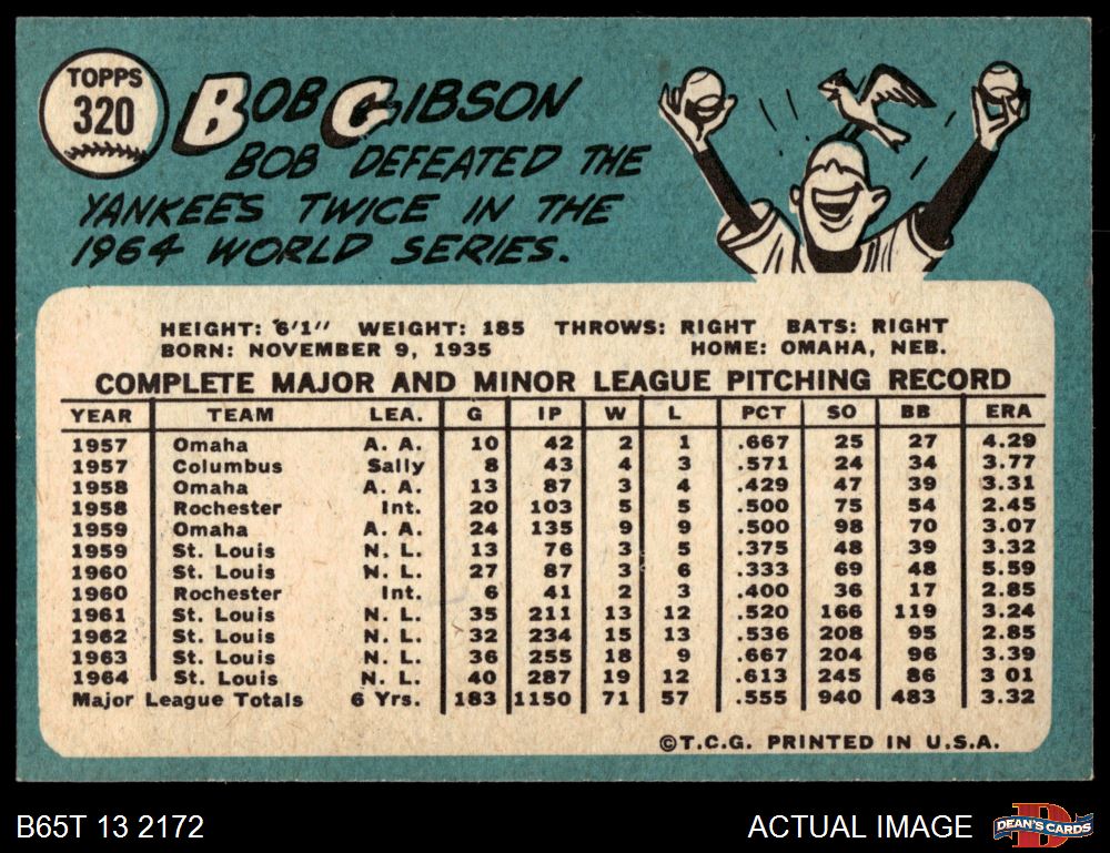 1965 Topps #320 Bob Gibson 5 - EX
