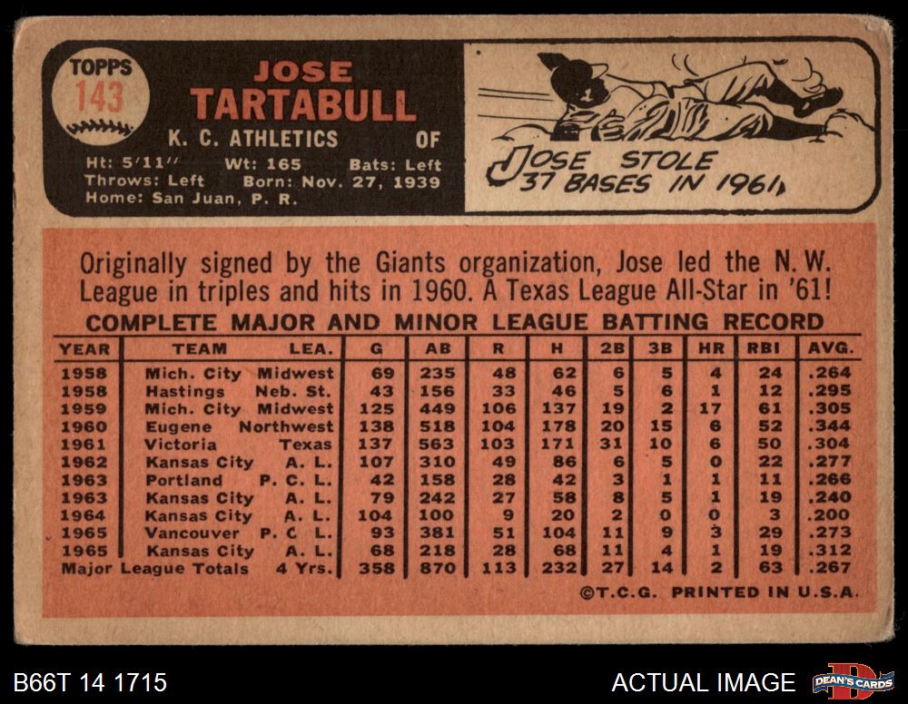 1966 Topps #143 Jose Tartabull Front Thumbnail