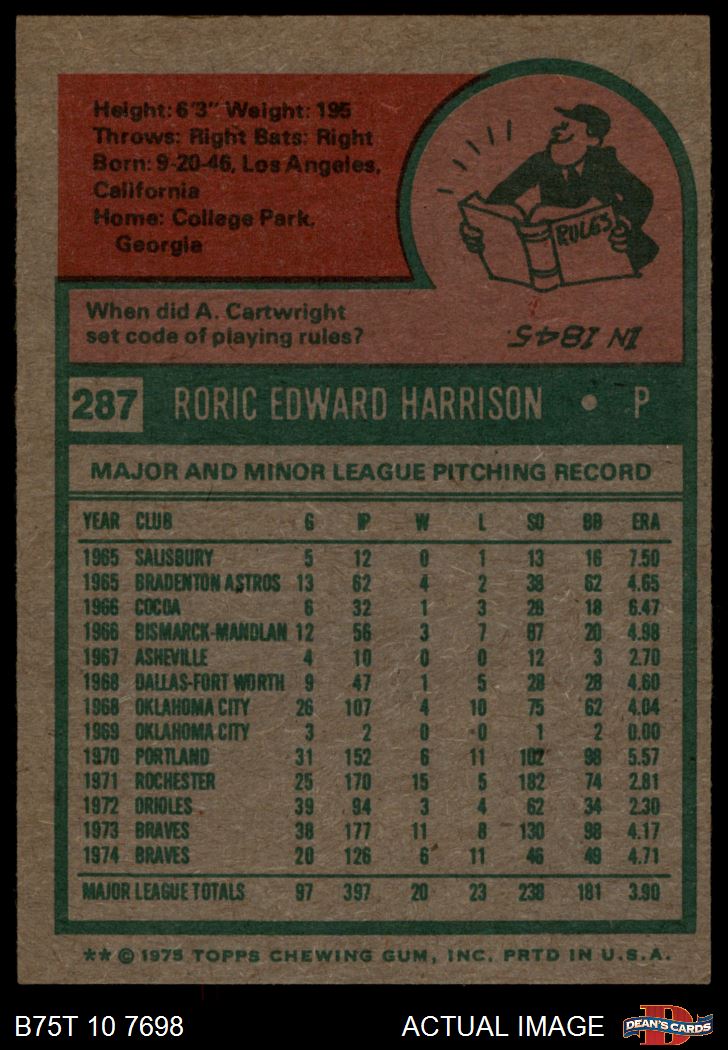 1975 Topps #287 Roric Harrison 7 - NM
