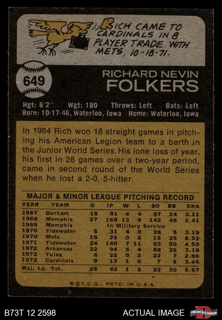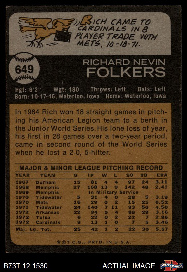 1973 Topps #649 Rich Folkers