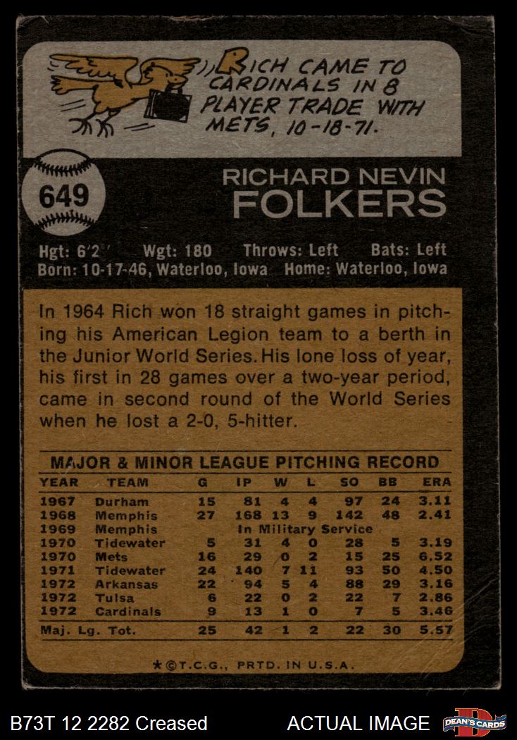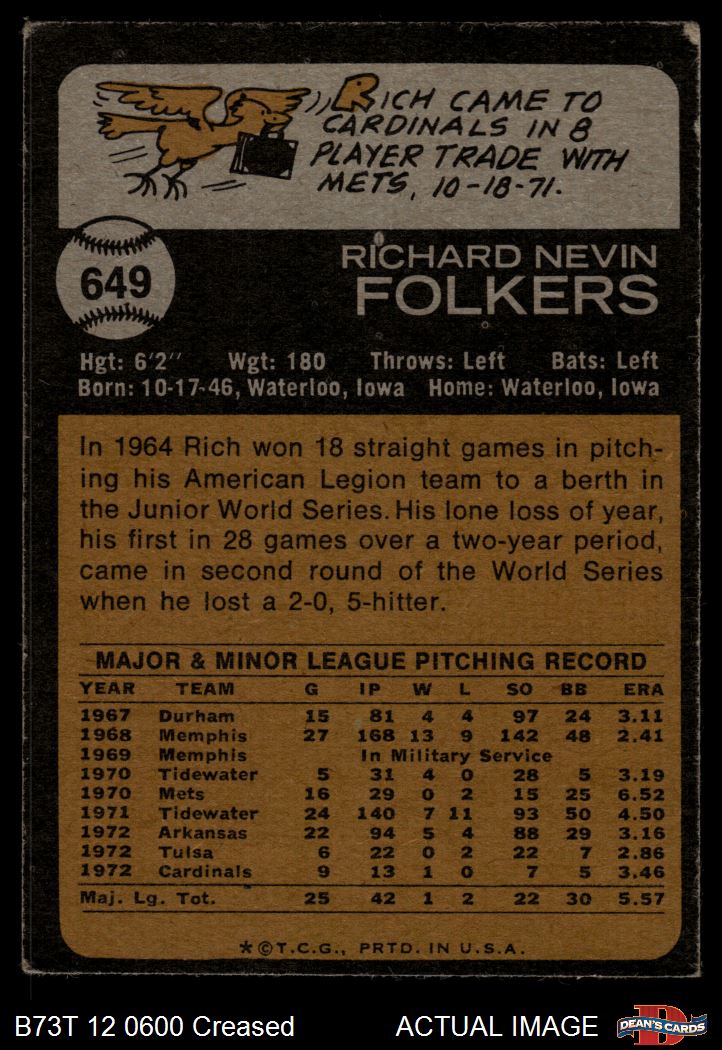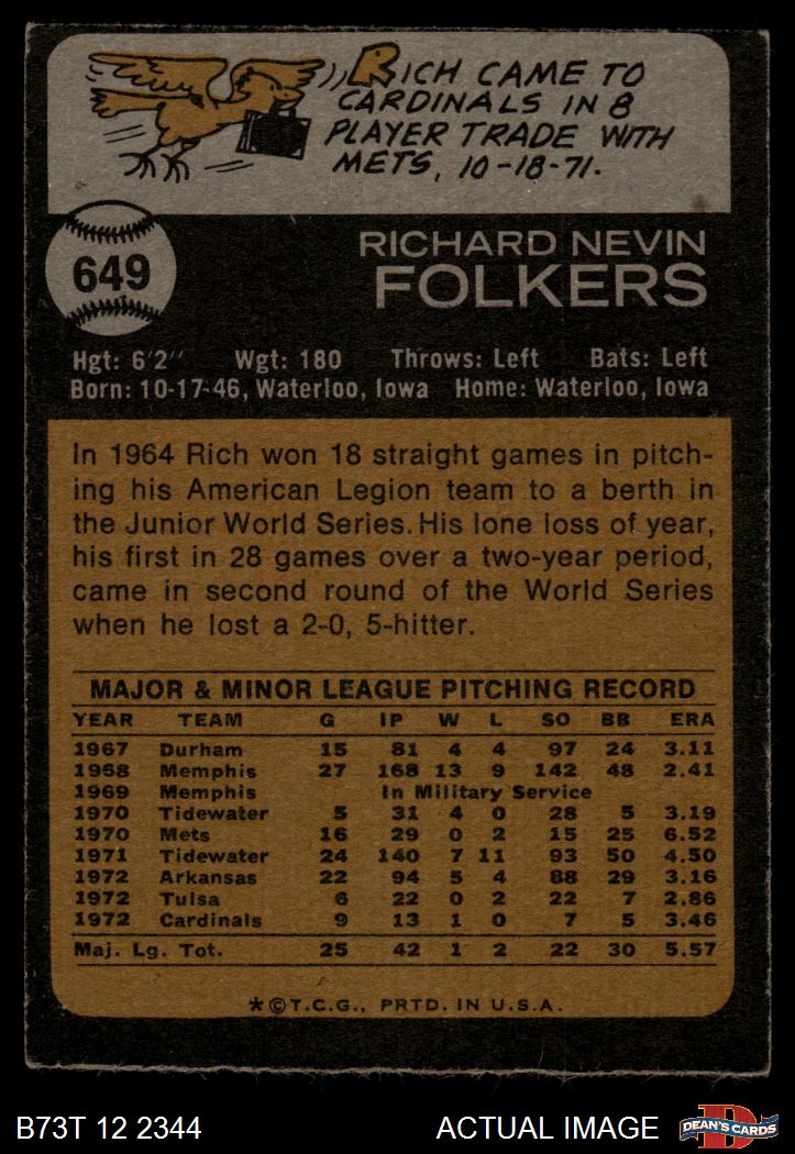 1973 Topps #649 Rich Folkers 2 - GOOD
