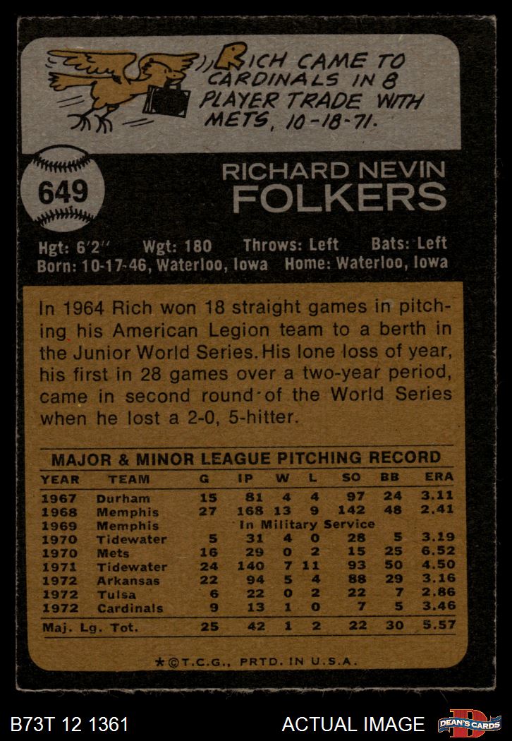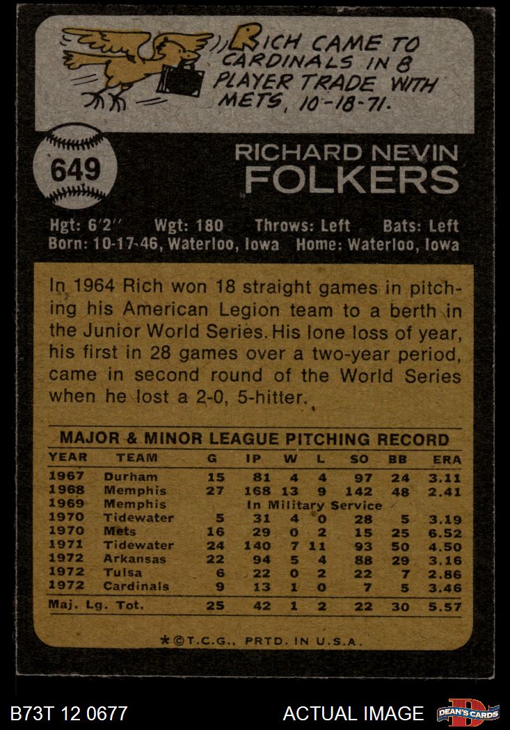 1973 Topps #649 Rich Folkers 3 - VG