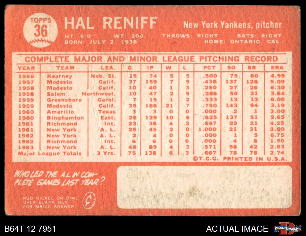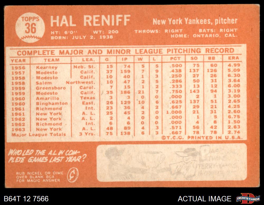 1964 Topps #36 Hal Reniff 1.5 - FAIR