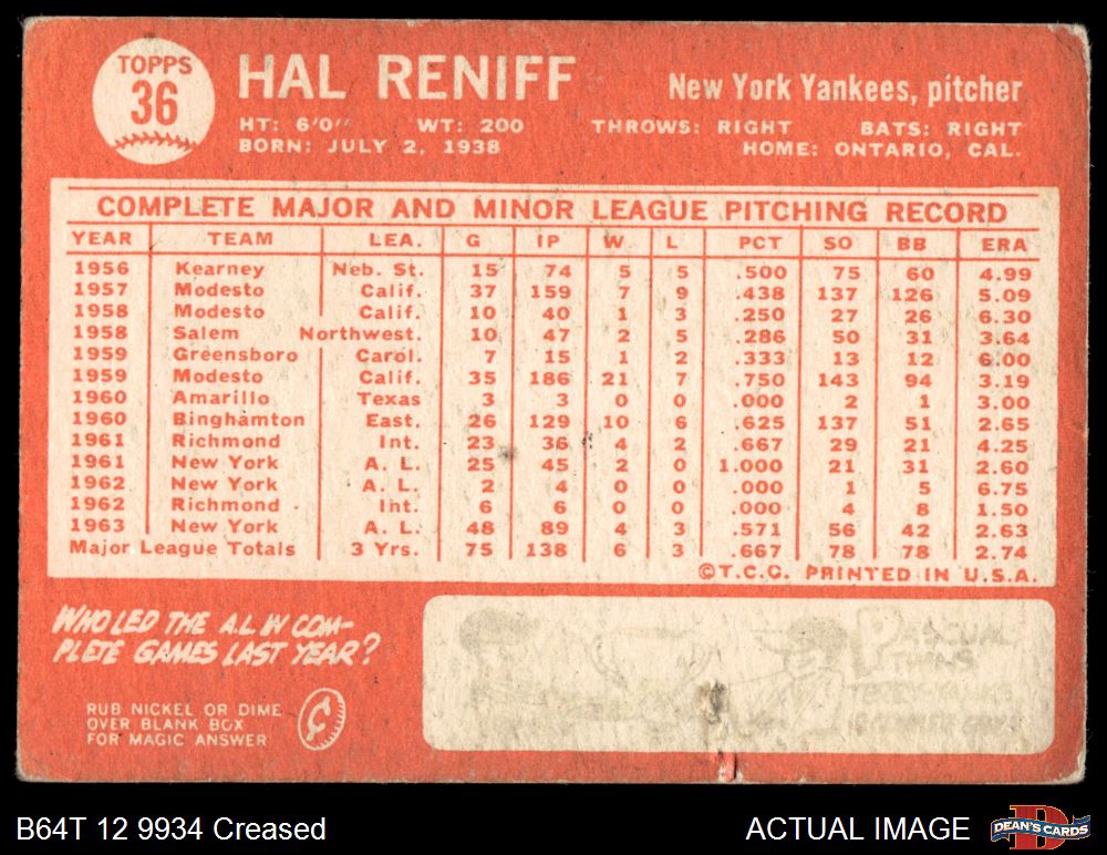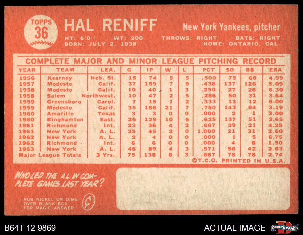 1964 Topps #36 Hal Reniff