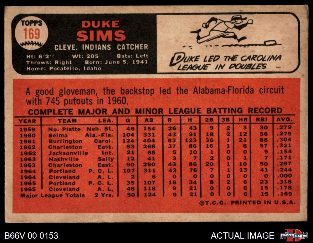 1966 Topps Venezuelan #169 Duke Sims 5 - EX
