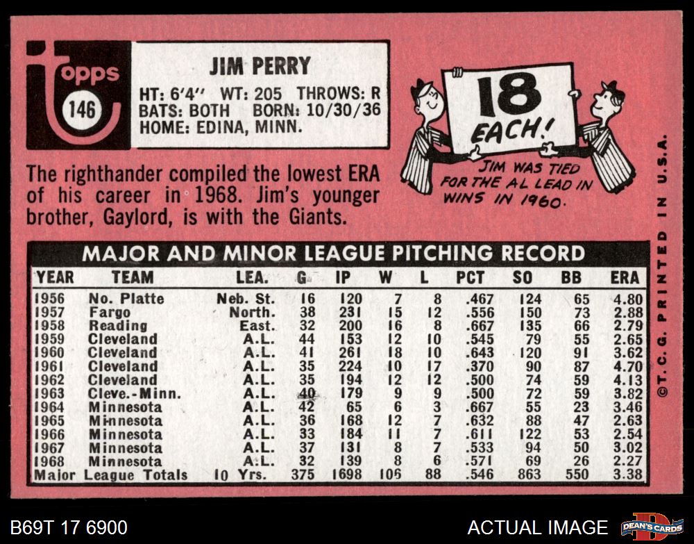 1969 Topps #146 Jim Perry 4 - VG/EX