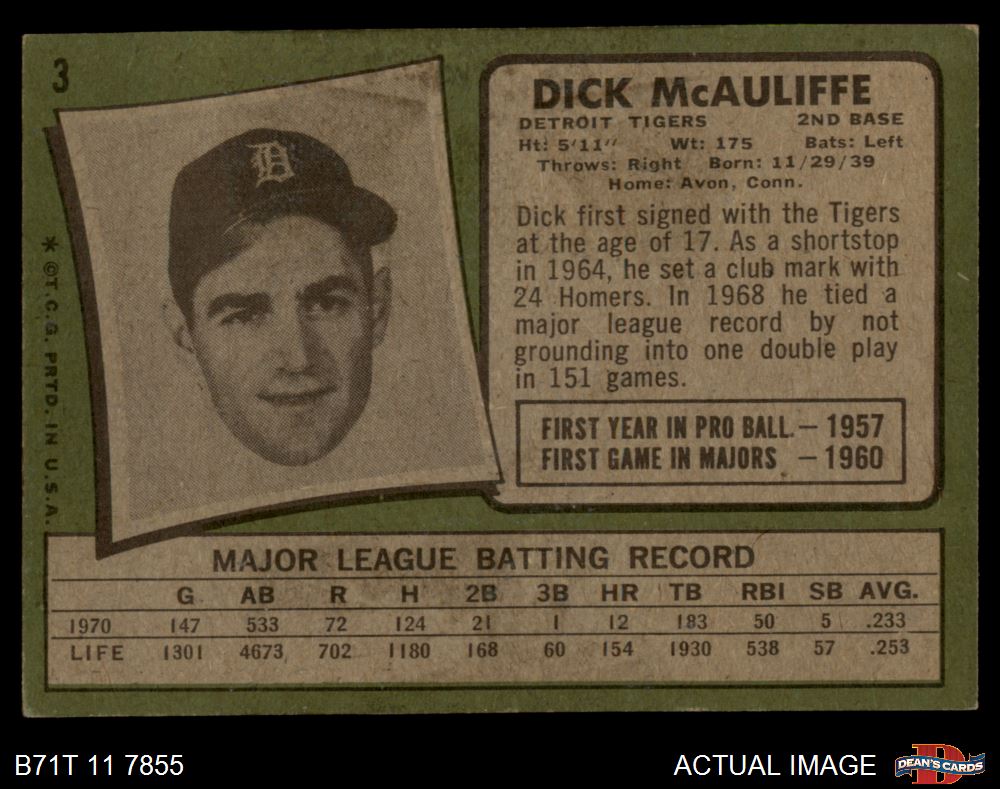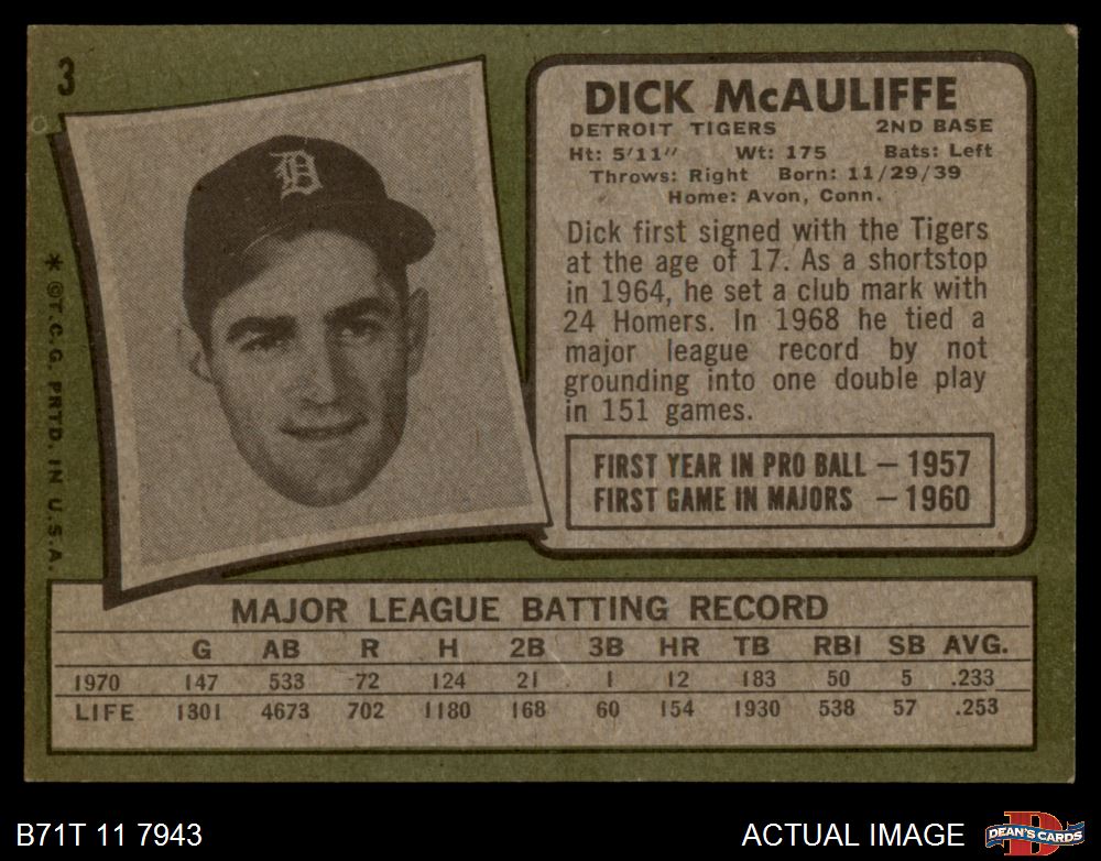 1971 Topps #3 Dick McAuliffe
