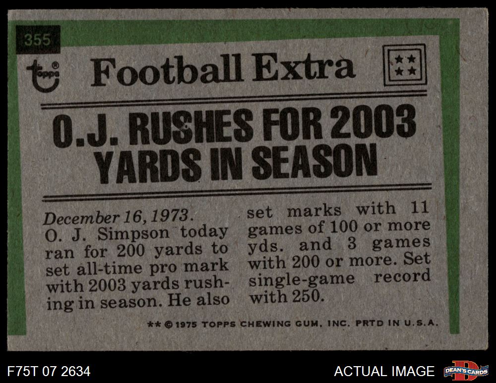 1975 Topps #355 - O.J. Simpson Record Breaker 2 - GOOD