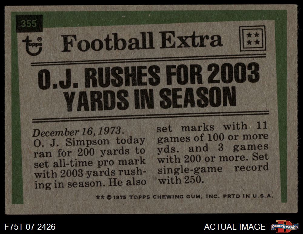 1975 Topps #355 - O.J. Simpson Record Breaker 3 - VG