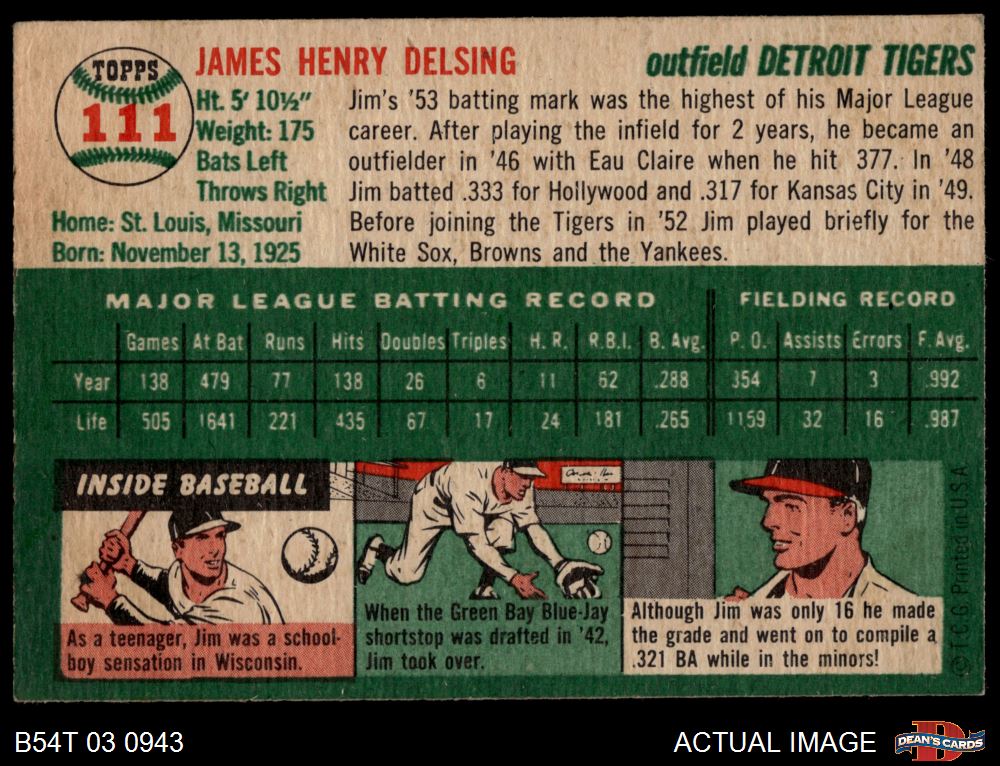 1954 Topps #111 Jim Delsing 4 - VG/EX