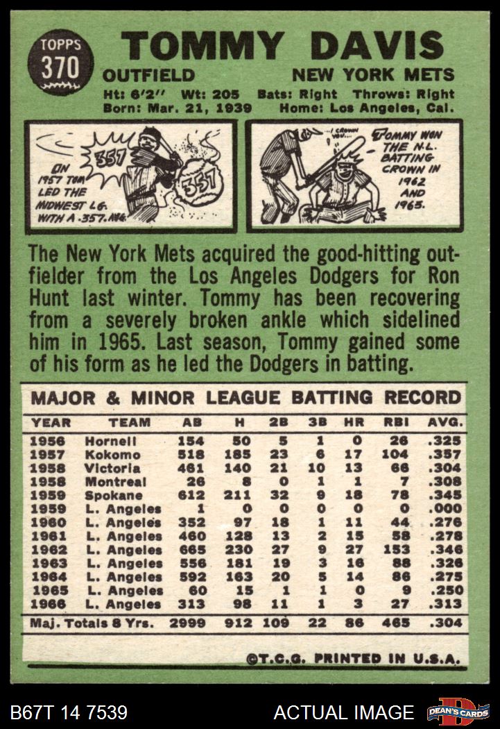 1967 Topps #370 Tommy Davis 8 - NM/MT