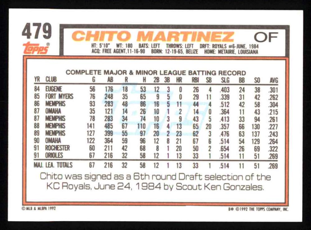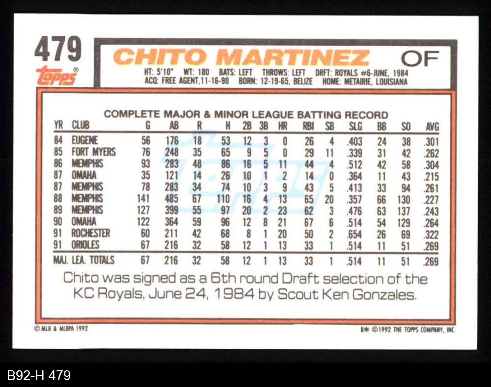 1992 Topps #479 Chito Martinez 8 - NM/MT