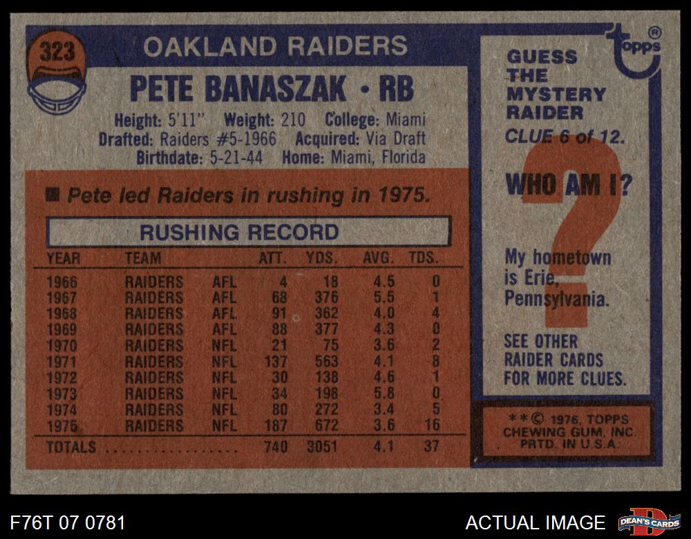 1976 Topps #323 Pete Banaszak 5 - EX