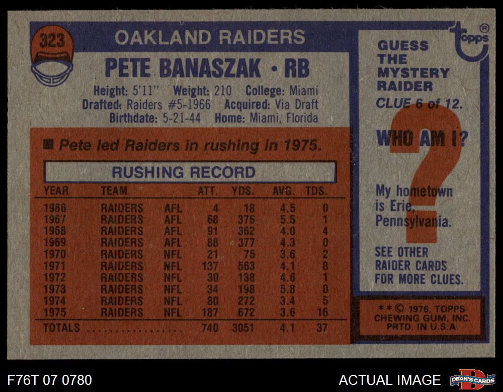 1976 Topps #323 Pete Banaszak 7 - NM