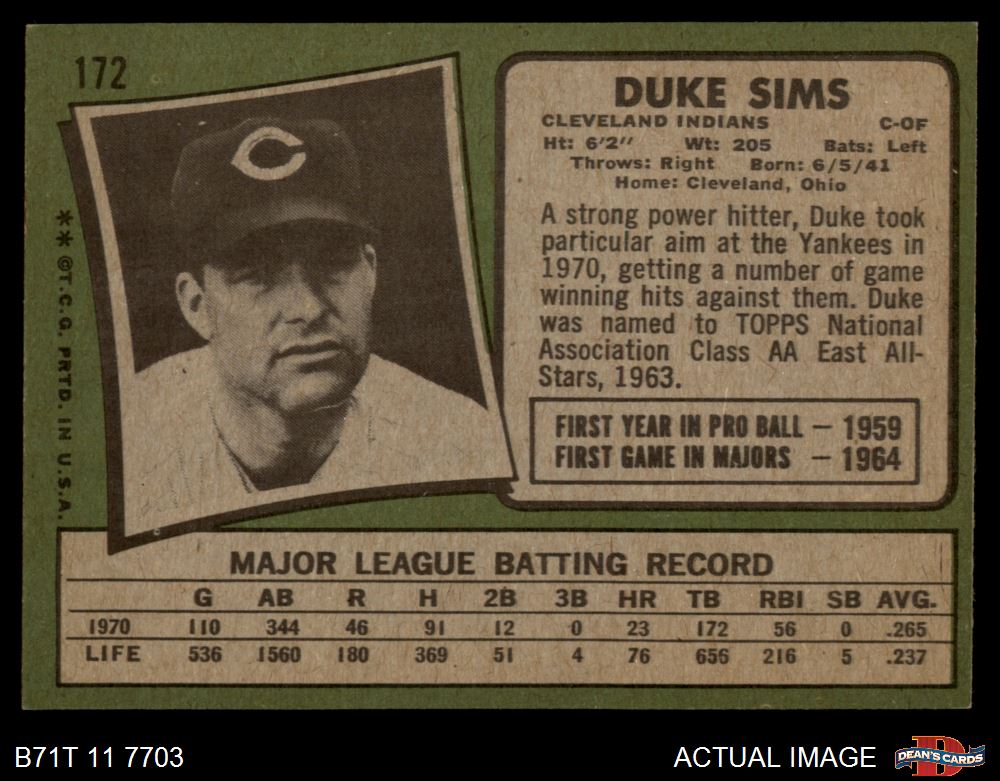 1971 Topps #172 Duke Sims 5 - EX