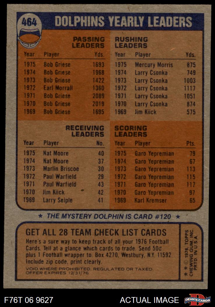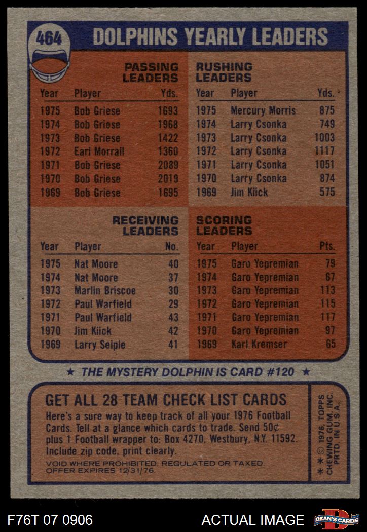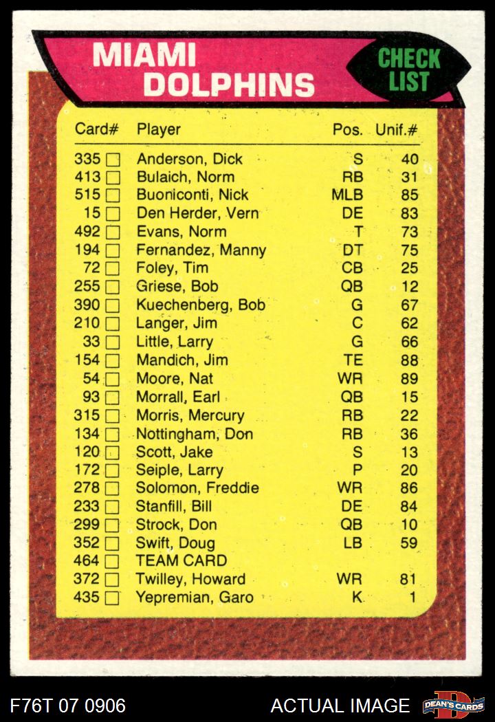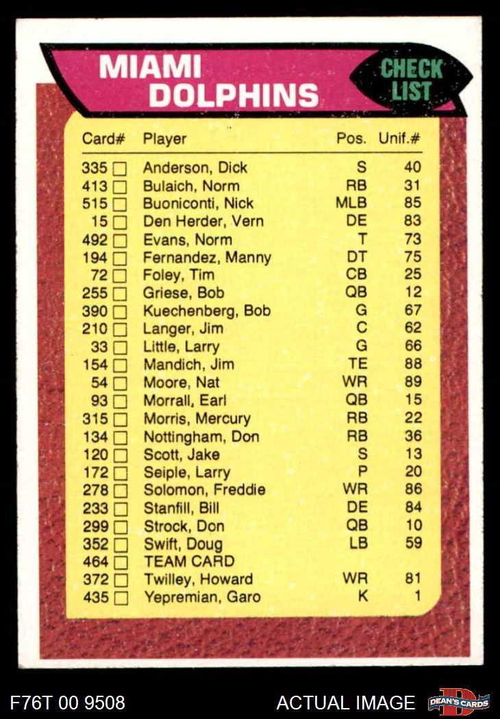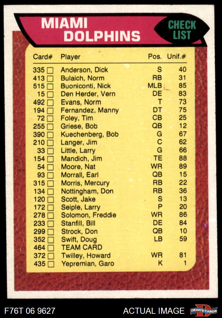 1976 Topps #464  Dolphins Team Checklist Front Thumbnail