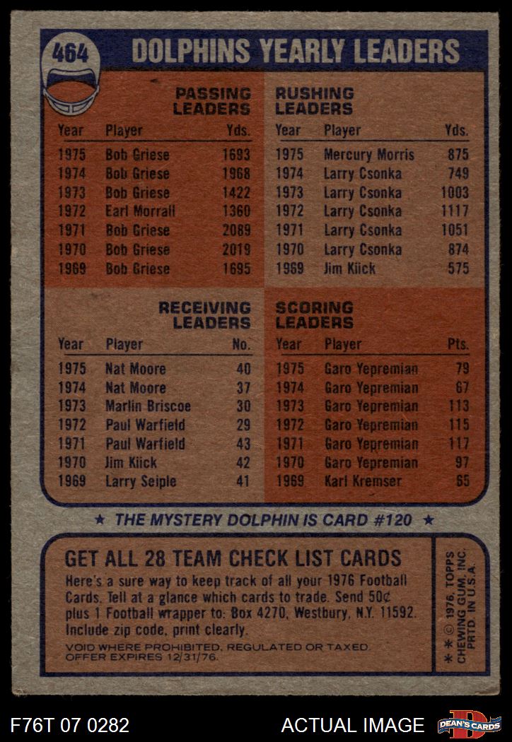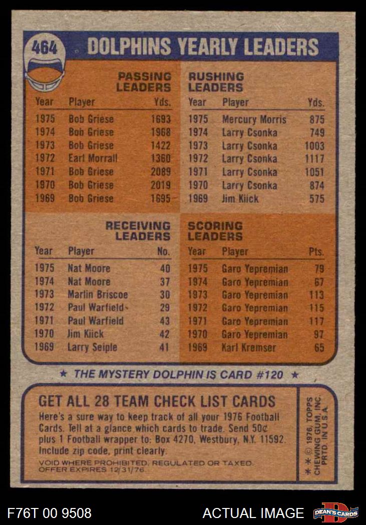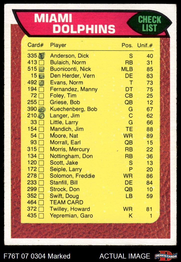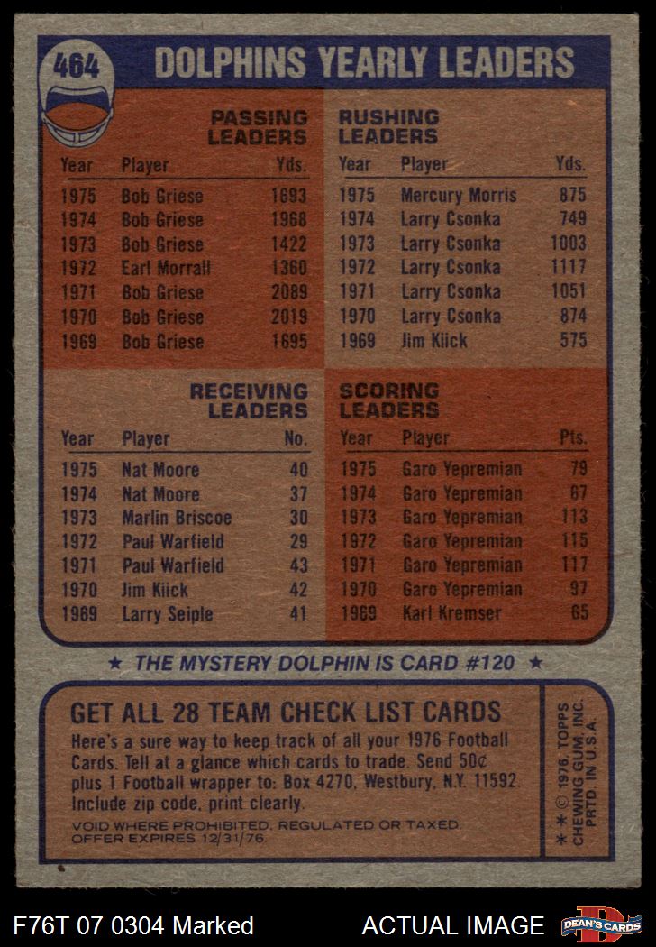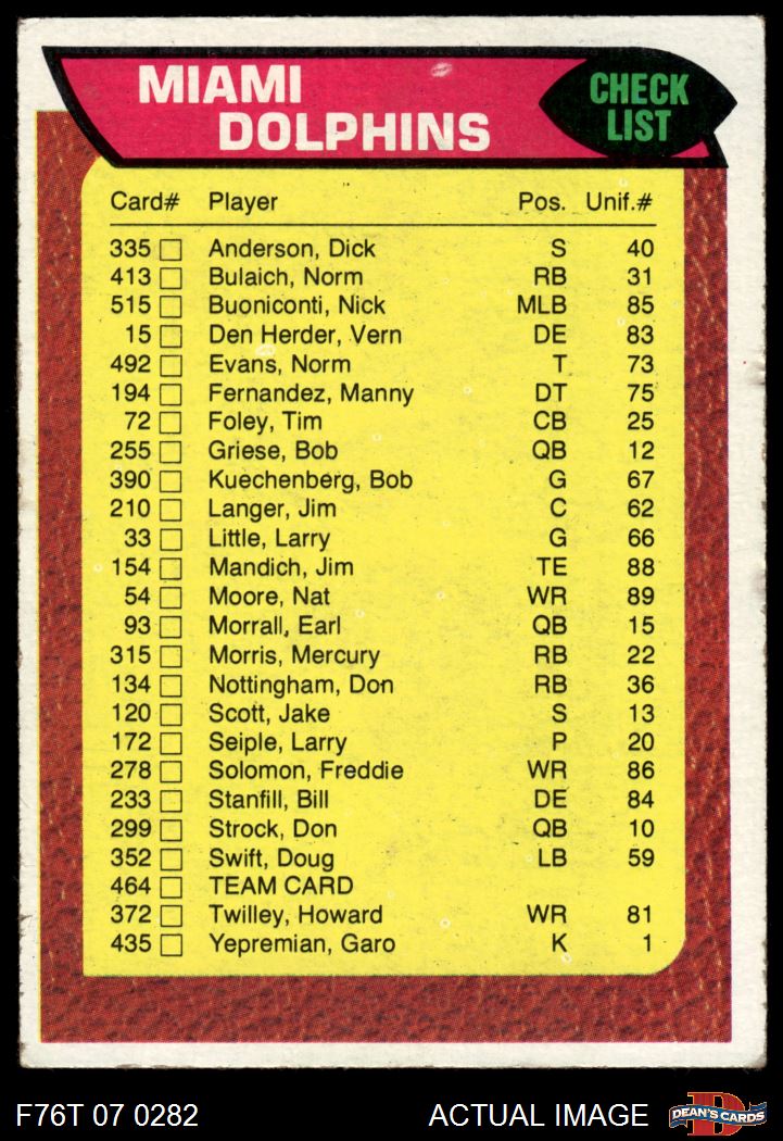 1976 Topps #464  Dolphins Team Checklist Front Thumbnail