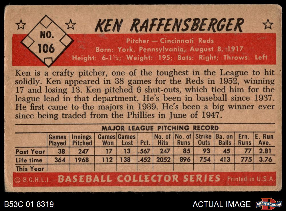 1953 Bowman #106 Ken Raffensberger 1.5 - FAIR