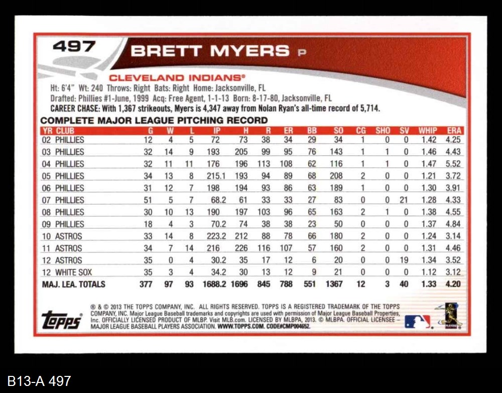 2013 Topps #497 Brett Myers 8 - NM/MT