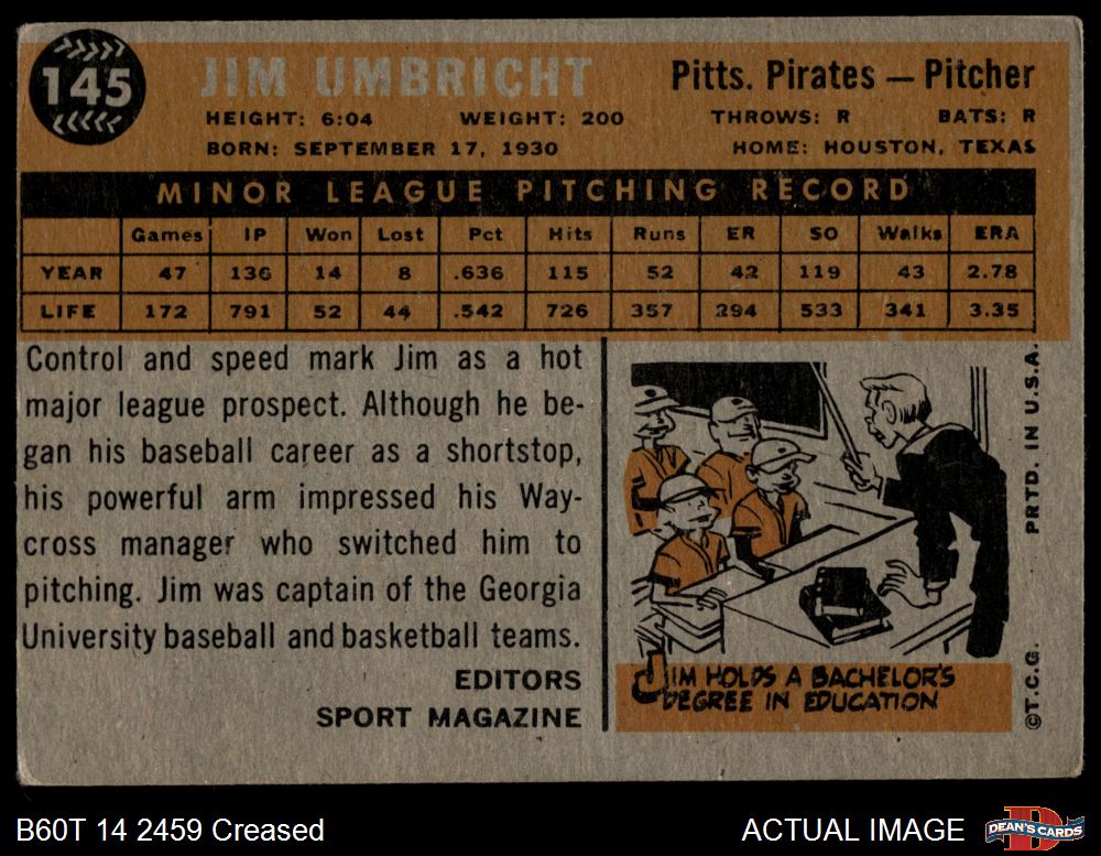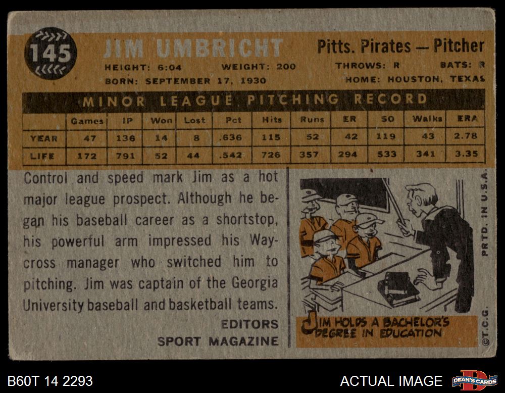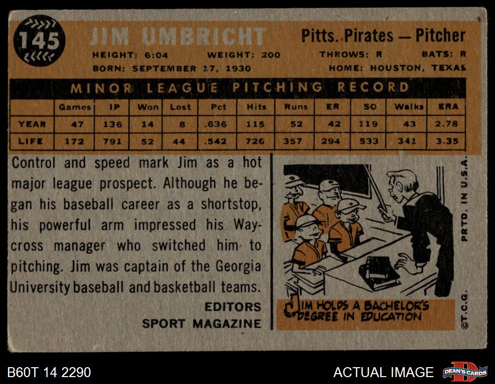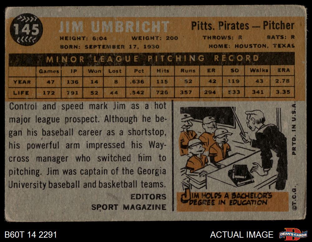 1960 Topps #145 - Jim Umbricht Rookie Star 2 - GOOD